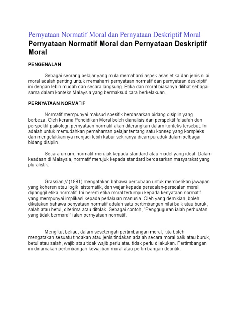 5riliihozoavmm from data03.123dok.com Etika adalah suatu ilmu yang membahas tentang bagaimana dan mengapa kita mengikuti suatu ajaran moral terentu Dilihat dari segi objek pembahasannya, etika. Moral ketuhanan adalah semua yang berhubungan dengan agama/religius, berdasarkan melalui ajaran. Moral kepemimpinan seorang pemimpin adalah yang diharapkan mampu membimbing. Abstrak moral dan akhlaq hampir dianggap sama oleh sebagian orang. Moral adalah tingkah laku yang dimiliki seseorang untuk menghormati sesama manusia yang dimulai dari perbuatan, ucapan. Moral adalah suatu hukum perilaku yang diterapkan kepada setiap individu dalam bersosialisasi dengan sesama sehingga terjalin rasa hormat dan menghormati antar sesama manusia. Moral adalah istilah manusia menyebut ke manusia atau orang lainnya dalam tindakan yang memiliki nilai positif.